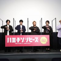 『八王子ゾンビーズ』の公開記念舞台挨拶が7月18日(土)に都内で行われ、山下健二郎、久保田悠来、藤田玲、牧島輝、松岡充、鈴木おさむ監督が登壇した。