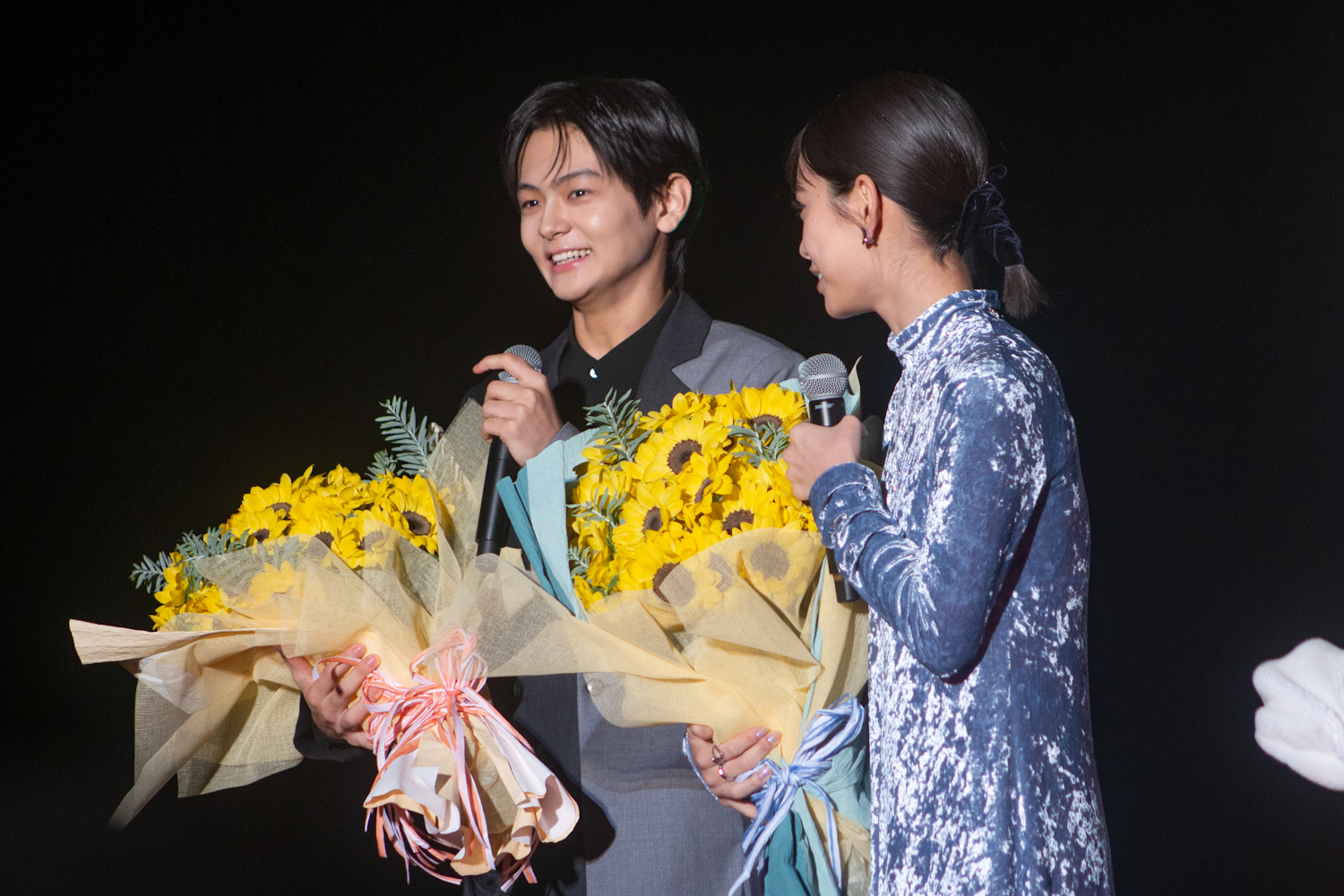さらに當真は本作について「たくさんの愛が詰まった温かい作品です。私と同世代の方にも、大人の皆様にもいろんな世代の方に楽しんでいただける作品です。大切な方と一緒に見ていただけていただけたらうれしいです」、齋藤は「一緒に見る方、一人で鑑賞される方、それぞれ感じ方があると思います。劇場で一緒に見ている方がいろんな感じ方が違っても、同じものを見ているという映画のよさが素敵な時間になると思います」とメッセージを送った。