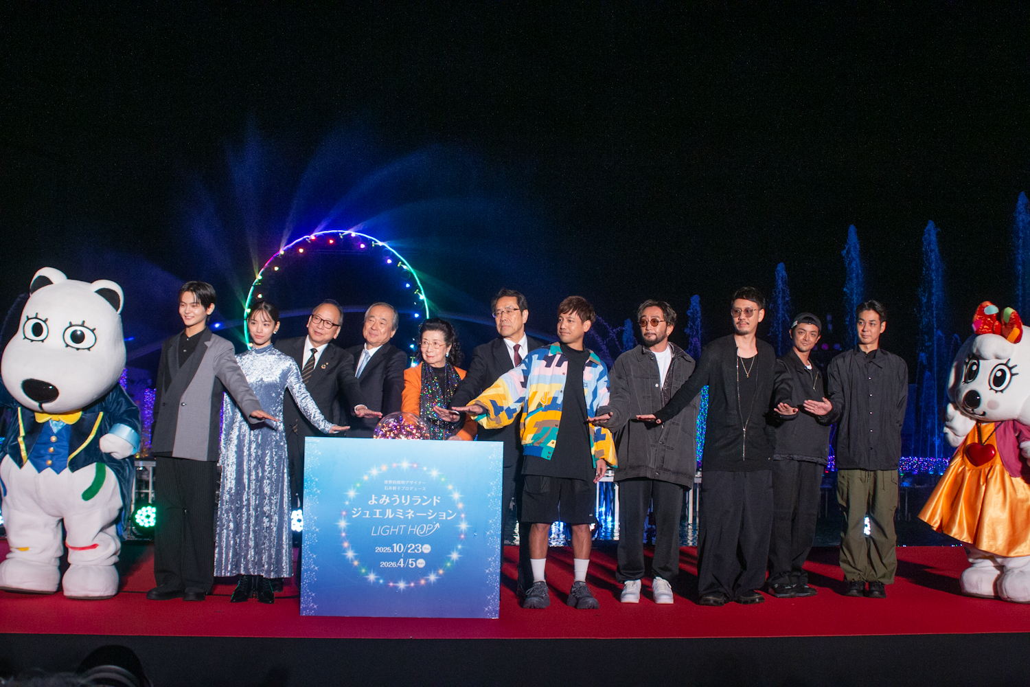 「よみうりランド ジュエルミネーション® 2025」点灯式が10月23日(木)によみうりランドで行われ、映画『ストロベリームーン 余命半年の恋』に出演する當真あみ、齋藤潤、同作の主題歌を担当するORANGE RANGEが登壇した。