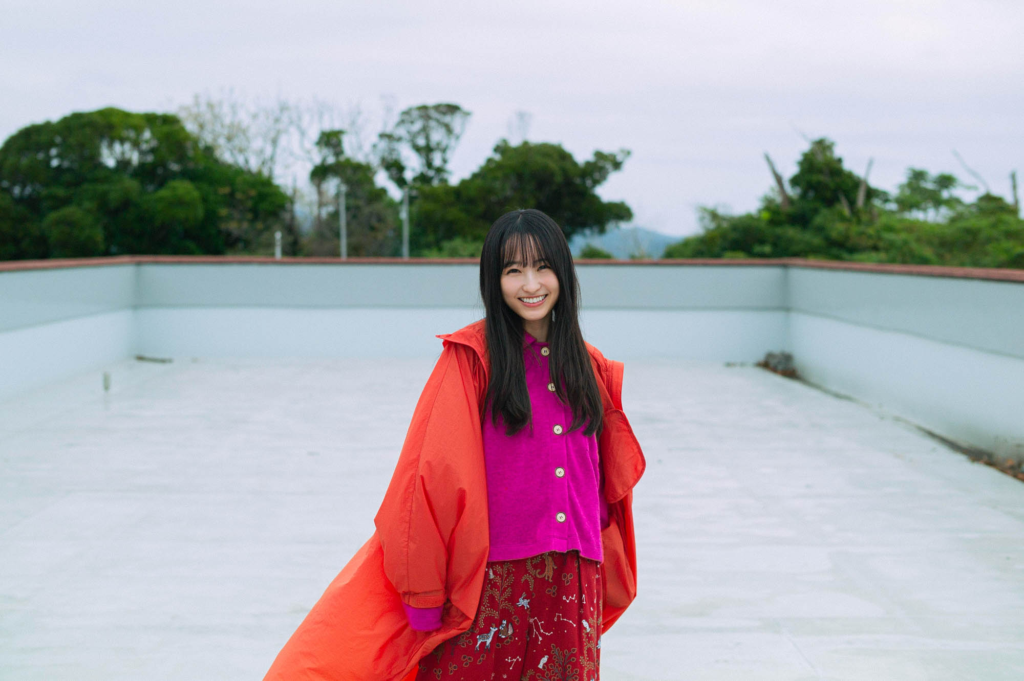 表紙・巻頭を飾るのは、一ノ瀬美空。2023年発売の32ndシングル「人は夢を二度見る」で初の選抜入りを果たして以来、最新曲「ビリヤニ」まで連続して選抜メンバーとして活躍するなど、いまやグループの中心を担う存在に。TBSの朝の情報番組「THE TIME,」のレギュラーを今年の3月まで務め、バラエティー番組やファッションイベントにも多数出演し、活動の幅を広げている。そんな一ノ瀬を、海と緑に囲まれた自然公園に連れ出して撮影を敢行した。