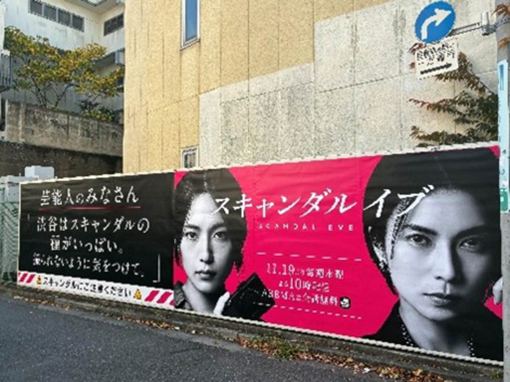 本作で芸能界のスキャンダルが描かれていることにちなんで、渋谷や恵比寿、六本木といった街に芸能人に向けたスキャンダル警告の屋外広告の掲出を開始。渋谷では「渋谷センター街ヒットビジョン」や「MAGNET by SHIBUYA109ウォールジャック Bプラン」、六本木では「六本木SEISHIDO VISION」などで掲出中。また、東京だけではなく福岡や、大阪では「ツタヤエビスバシヒットビジョン」などに掲出。他にも様々な駅構内や電車内にも掲出されている。