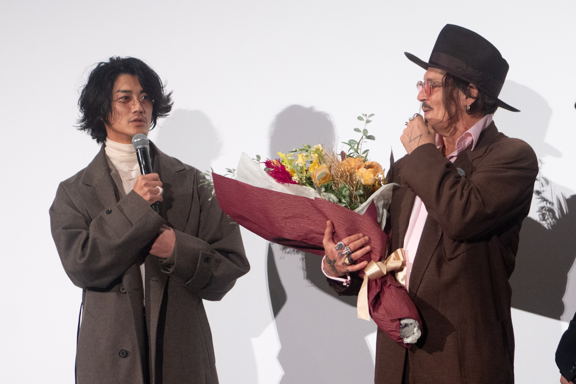 イベントでは、赤西仁がサプライズ登壇した。会場が驚きと歓声に包まれれる中、赤西かあらはジョニー・デップに花束が贈られると、熱いハグを交わしていた。