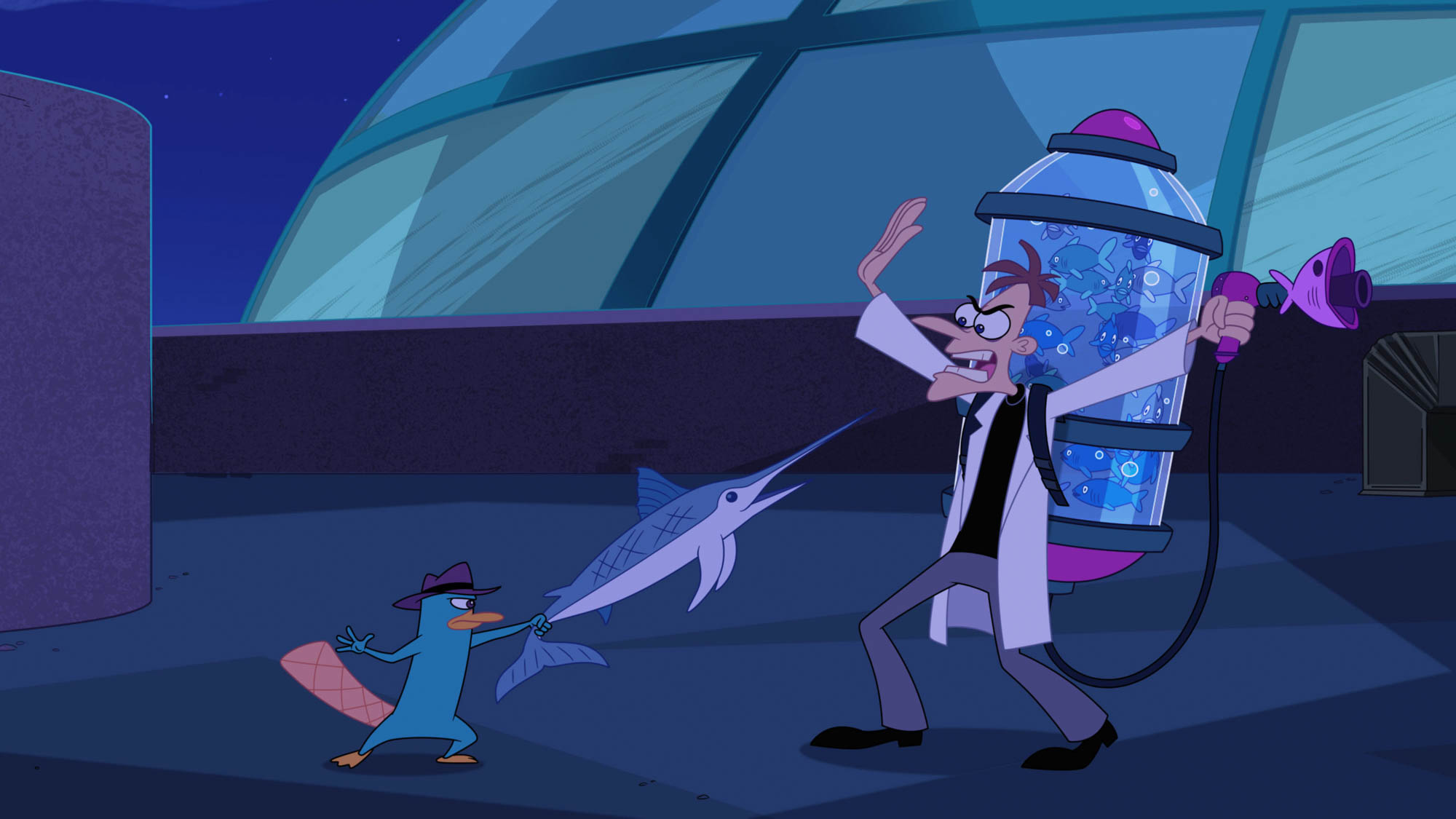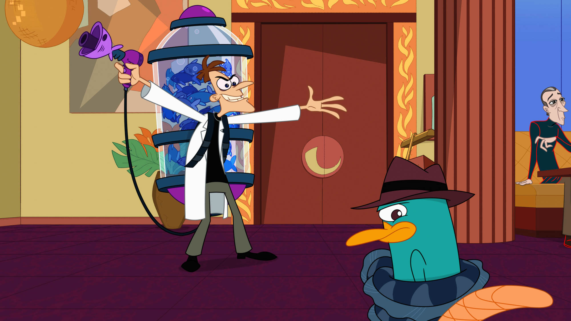 そして、ドゥーフェンシュマーツ博士も悪巧みに復帰し、世界平和のためにモノグラム少佐らO.W.C.A.も活動。そして、フィニアスとファーブのペットのカモノハシペリーも相変わらず、エージェントPとしてドゥーフェンシュマーツ博士の悪の発明品を止めるために出動する。もちろん、『フィニアスとファーブ』の定番となる、エピソードにちりばめられたオリジナルソングも新曲が続々と登場する。