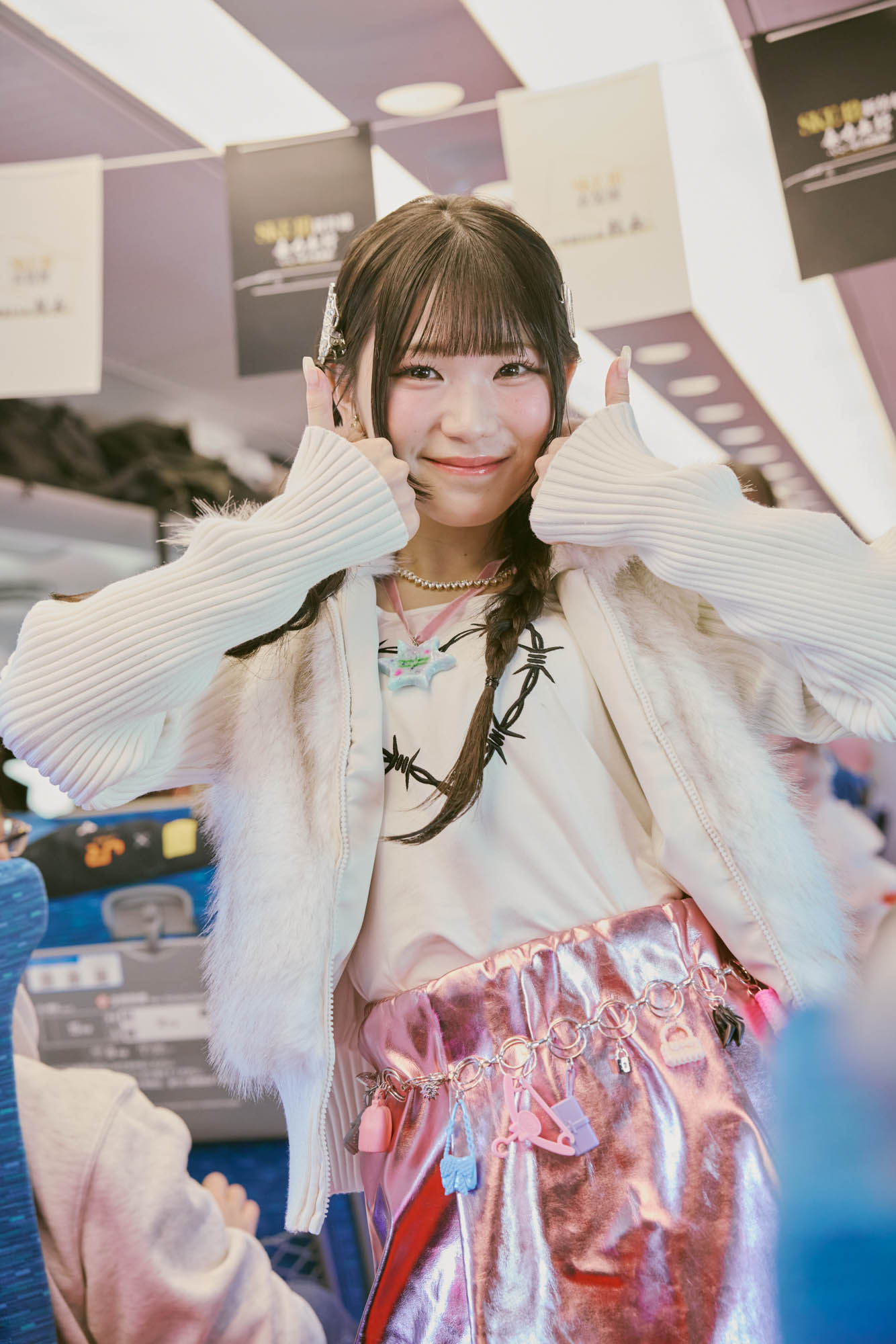 ファッションショーの第二部では衣装のコンセプトがガラッと変わり、甘めの衣装を着た2人が「重力シンパシー」に合わせて再び車内に登場。新幹線の車内という特別な空間でのファッションショーは新鮮で、ひときわ特別な思い出となったのではないだろうか。