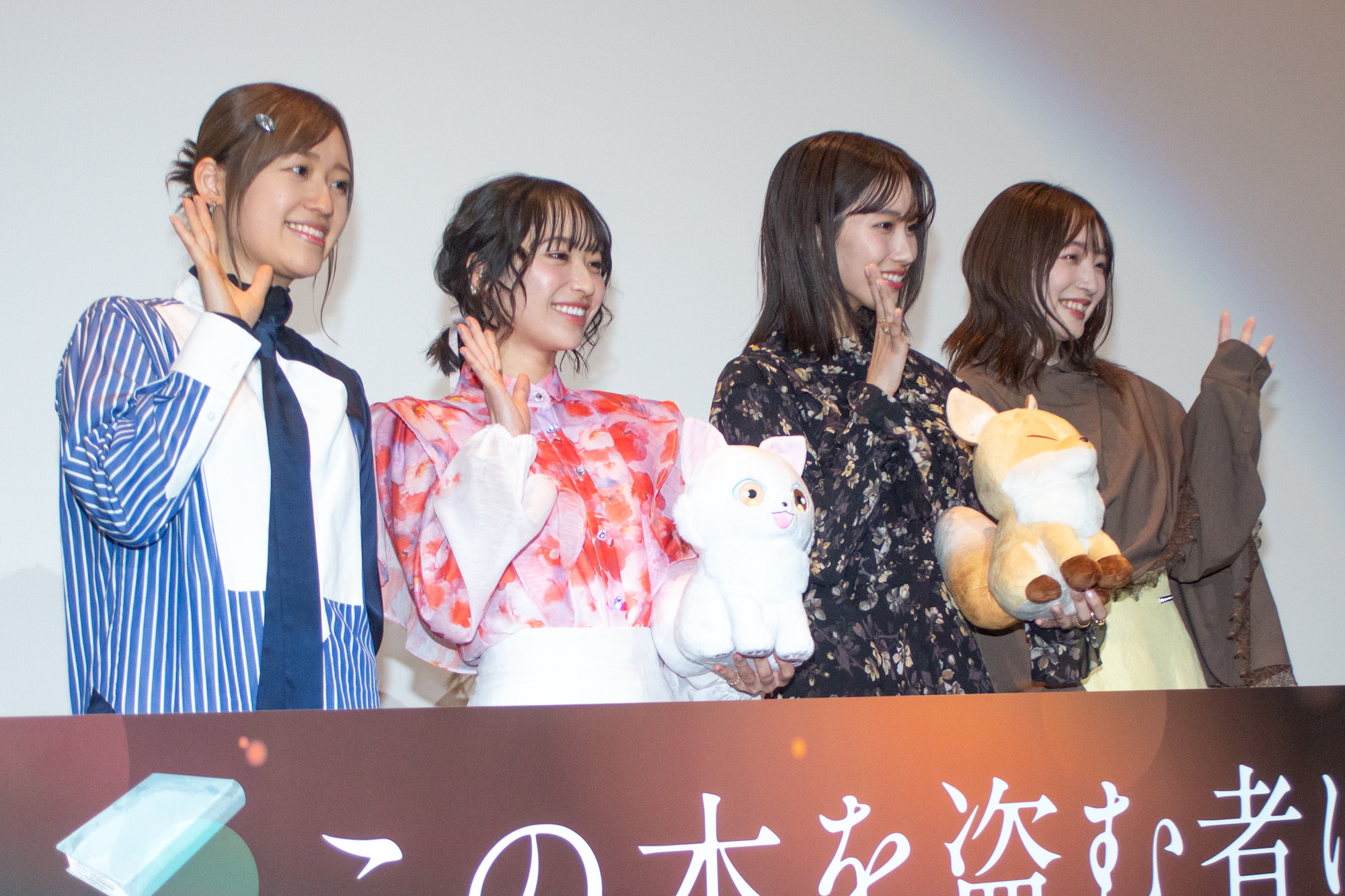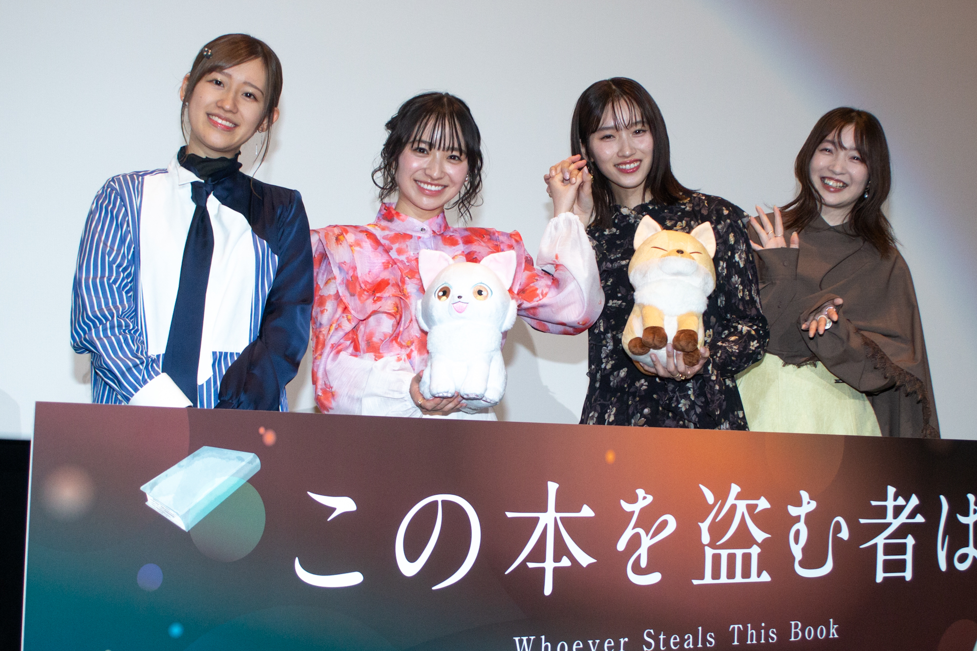 劇場アニメーション『この本を盗む者は』の大ヒット記念舞台挨拶が1月10日(土)に新宿バルト9で行われ、片岡凜(御倉深冬役)、田牧そら(真白役)、上田麗奈(原田夏芽役)、高橋李依(春田栞役)が登壇した。