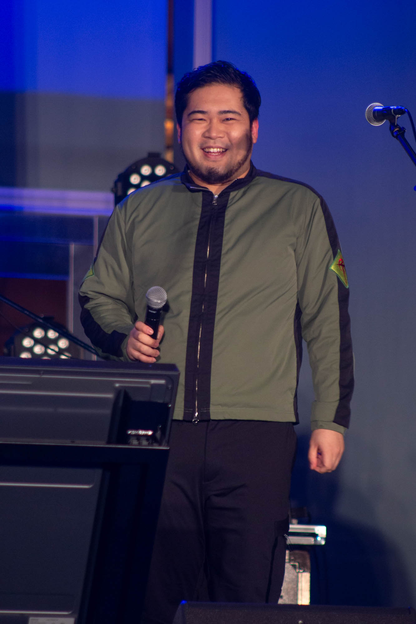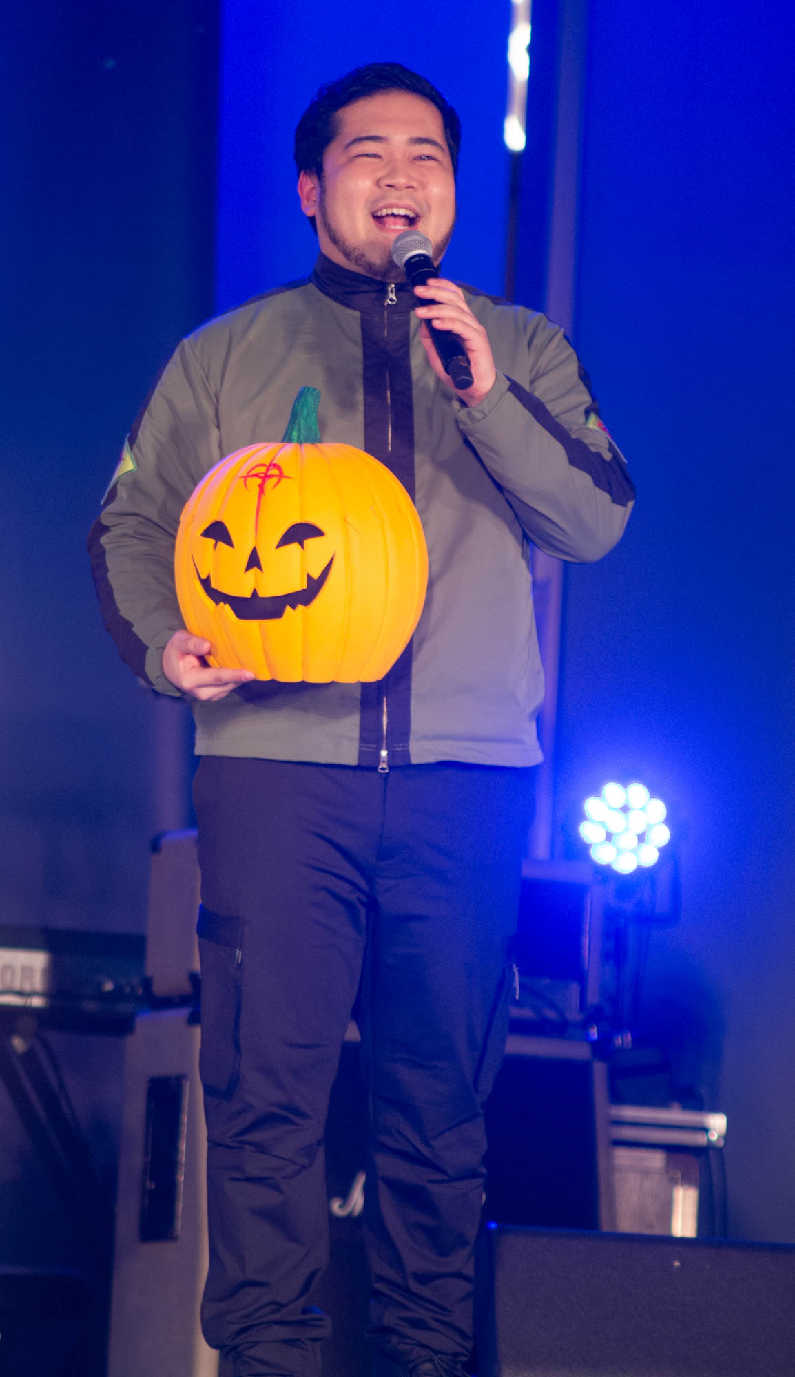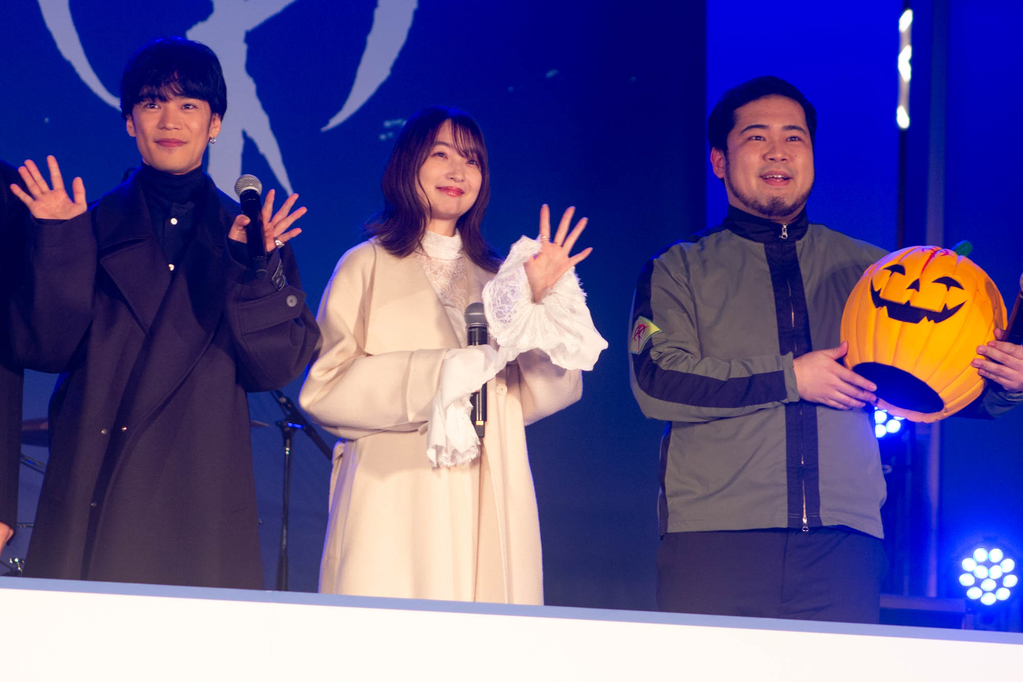 そんなアフレコの余韻に浸る間もなく、会場の大きなスクリーンには本作のプロモーション活動“閃光のセンコウ活動”の一環として、これまでSNSや街中で暗躍してきたカボチャ頭の“偽マフティー”の姿。さらにステージ横から本人が登場。「マフティーです」と挨拶しながら登場しつつ「私の正体、見せて差し上げましょう」とカボチャのマスクを外すと、その正体はお笑いコンビ・令和ロマンの松井ケムリであったことが明かされた。SNSを通じて様々な場所にゲリラ的に登場し、宣伝活動を行ってきたことに触れると「いい偽マフティーだったということですね」と胸を張った。また、カボチャのマスクについて感想を問われると「被り心地は最悪です(笑)」と即答し、「サイズがかなりタイトめで。あごがへこんだ状態でしゃべってる」と明かし、「視界がすごく狭くて、両サイドが見えてなくて前だけに集中できるんで、なんかモビルスーツに乗ってるみたいな気持ちになりました。むしろパイロットの気持ちになれました」と笑いを誘った。また、松井は「この『閃光のハサウェイ』はちょっと大人向きの作品になってるし、『逆襲のシャア』とか見たらもう結構すぐ楽しめるようになってますんで、昔からガンダム好きな人にも刺さりやすい作品かなと思いました」と感想を述べた。