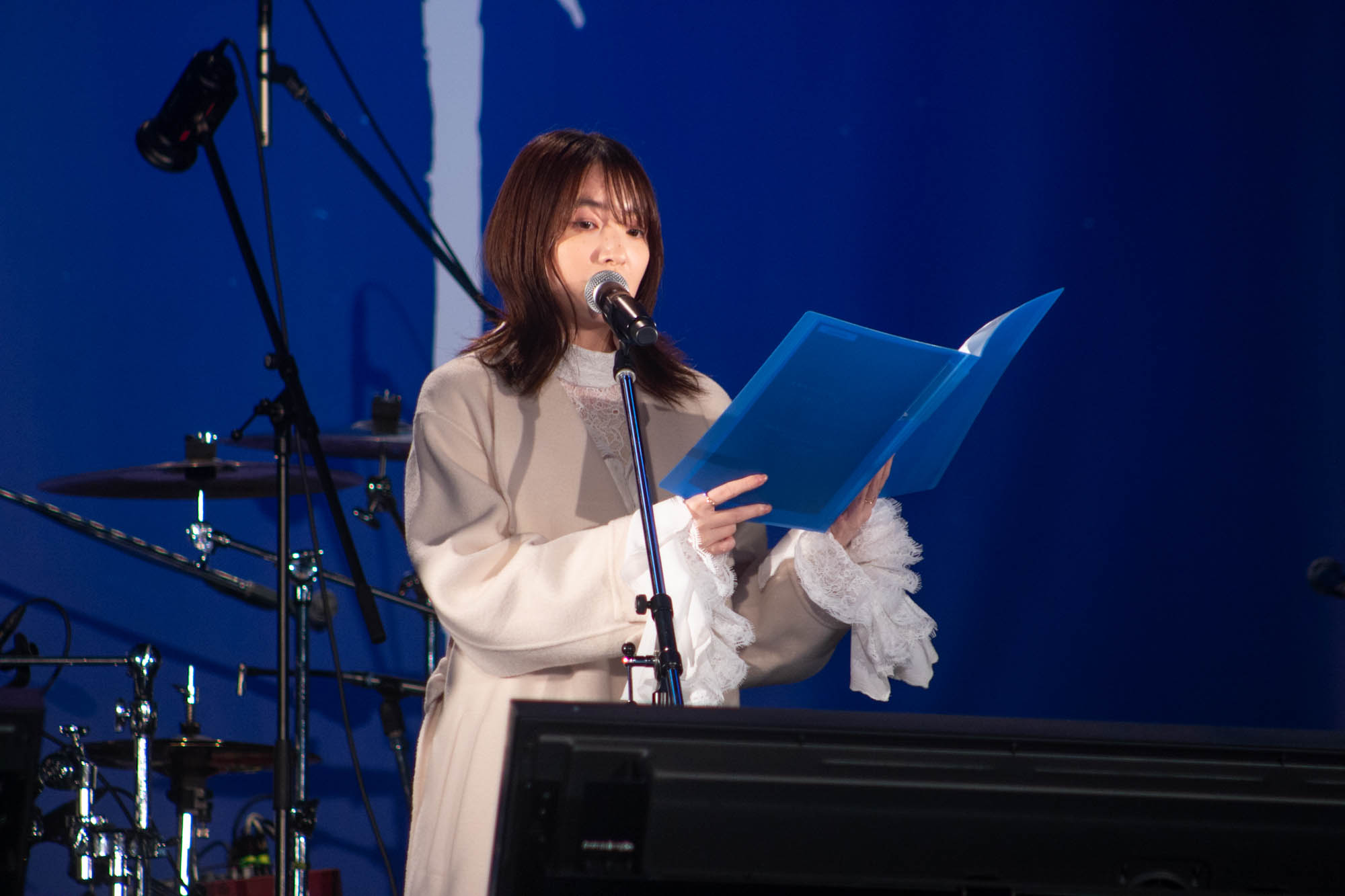 イベントでは小野と上田による生アフレコを披露。前作『閃光のハサウェイ』の印象的なワンシーンを披露すると会場からは歓喜の声が寄せられた。アフレコを終えると、小野は「緊張したー!(笑)」と安堵の表情を見せ、上田も「 隣から(小野の緊張が)伝わってきました」と笑い合った。普段とは異なる環境での演技について、上田は「アフレコブースとは違う環境でこのシーンをやらせていただくのも貴重な経験なので、この緊張感も込みで特別だなと思いながらやっておりました」と振り返った。