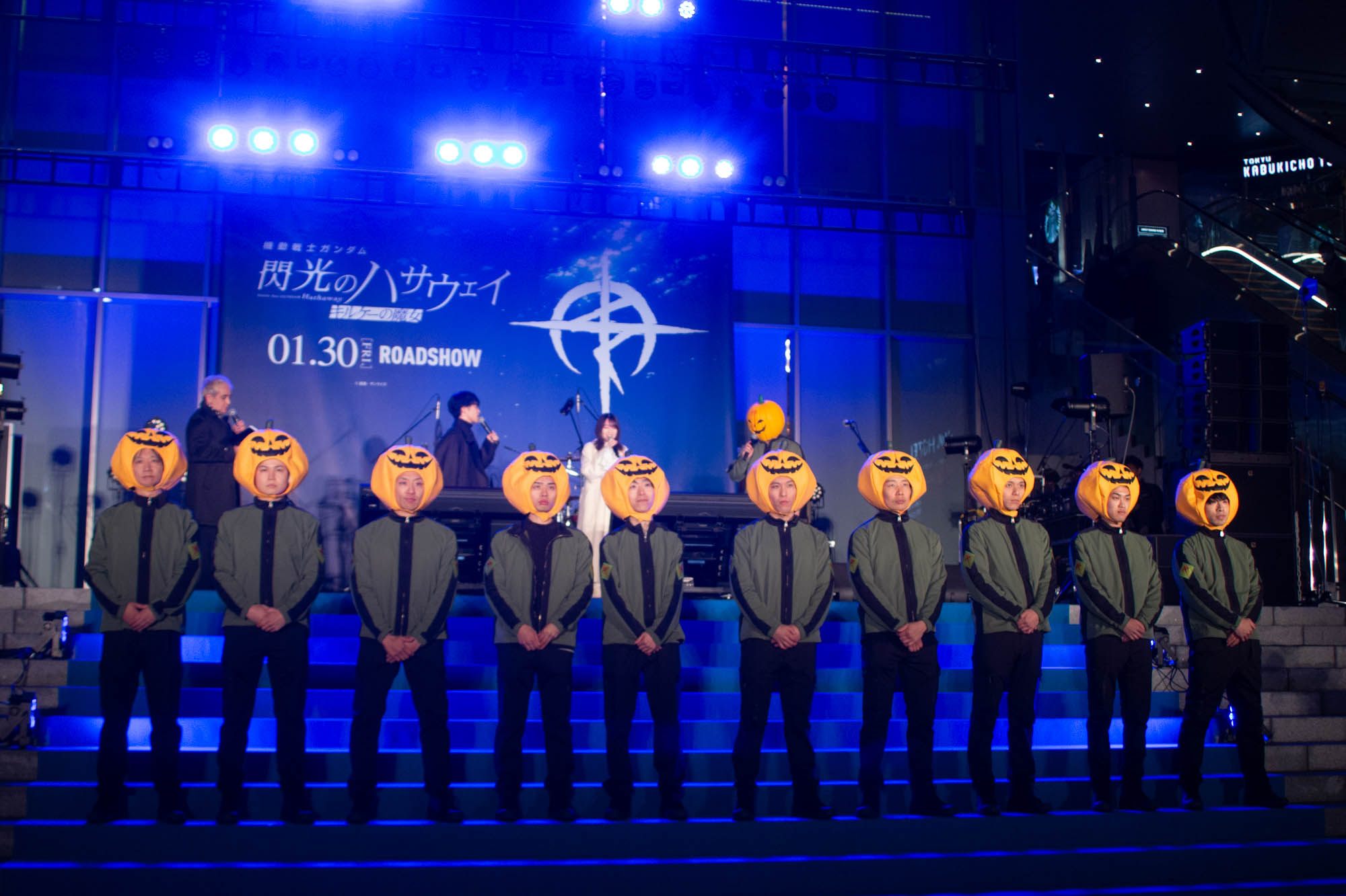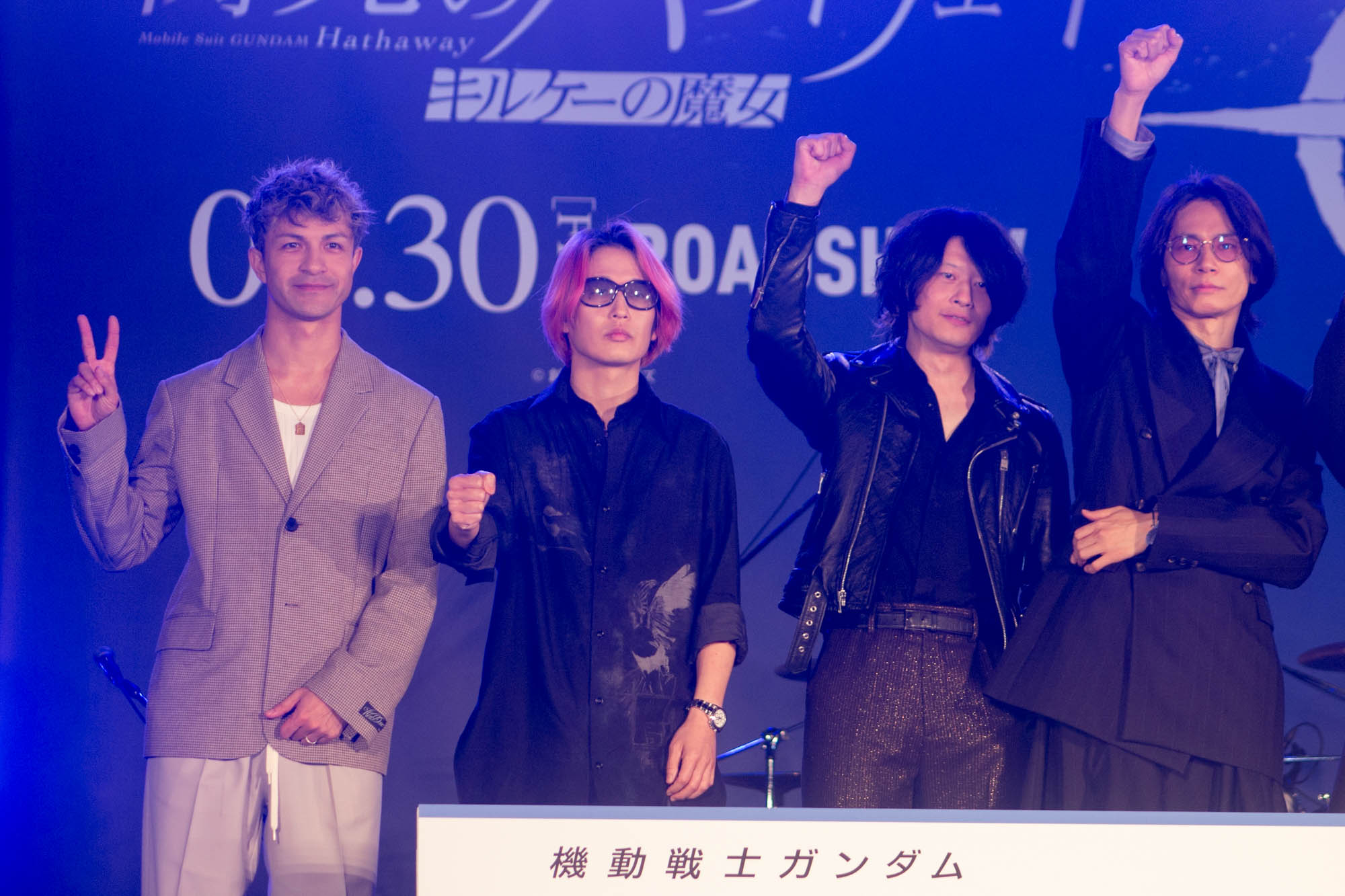 イベント後半には、前作『閃光のハサウェイ』の主題歌を担当した[Alexandros]が登場。歌舞伎町に集まった観客を沸かせた。ボーカルの川上洋平は「我々[Alexandros]、去年デビュー15周年を迎えまして、今年は16周年ということで、1年目のような感覚で、新人のような気持ちでやっていこうかなと思います。だから今年一発目のライブ、路上ライブでやろうかなと思いました」と会場を沸かせた。ライブでは「Girl A」「超える」を立て続けに披露。さらに前作『閃光のハサウェイ』主題歌である「閃光」を披露し、会場は最高潮に盛り上がった。
