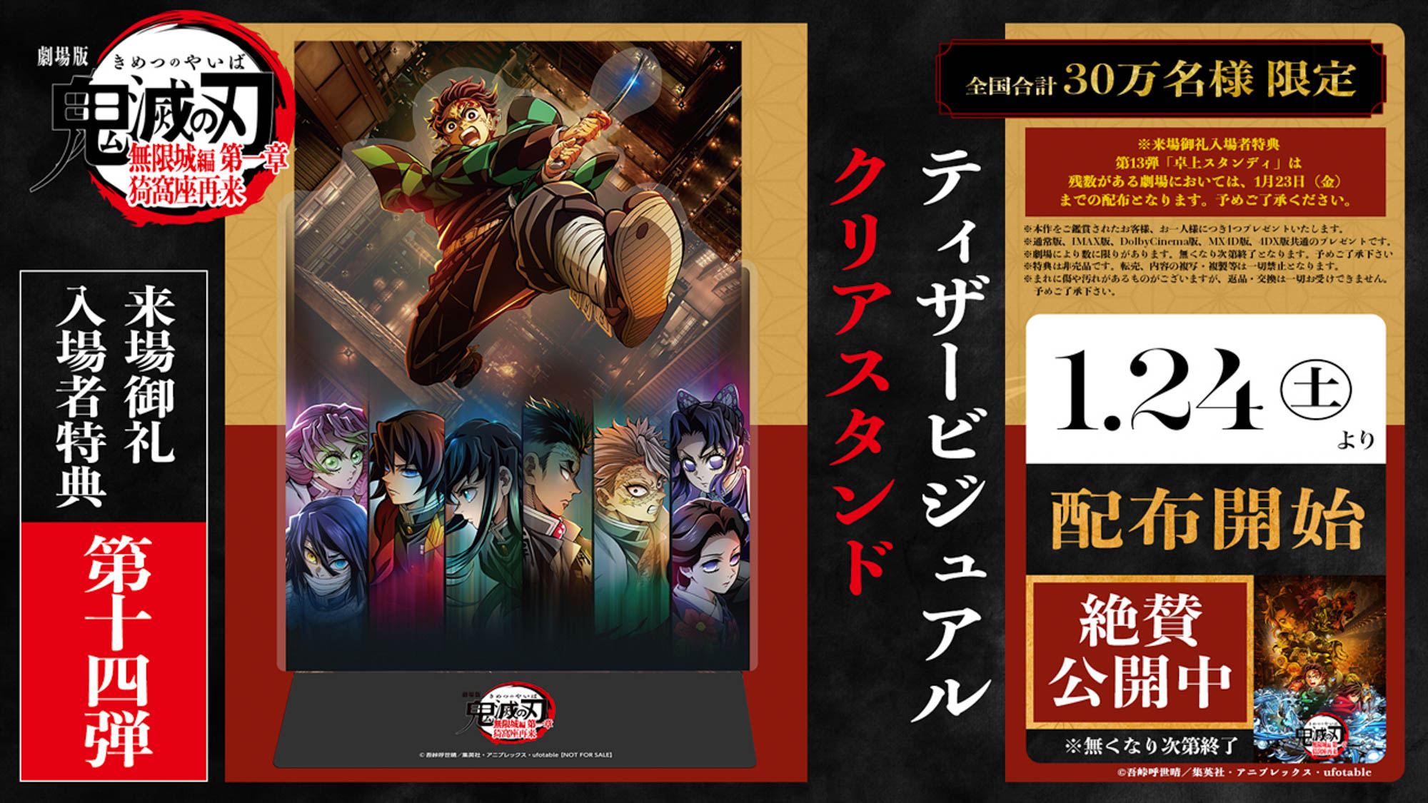 『劇場版「鬼滅の刃」無限城編 第一章 猗窩座再来』の来場御礼入場者特典第14弾として「ティザービジュアル クリアスタンド」の配布が決定した。