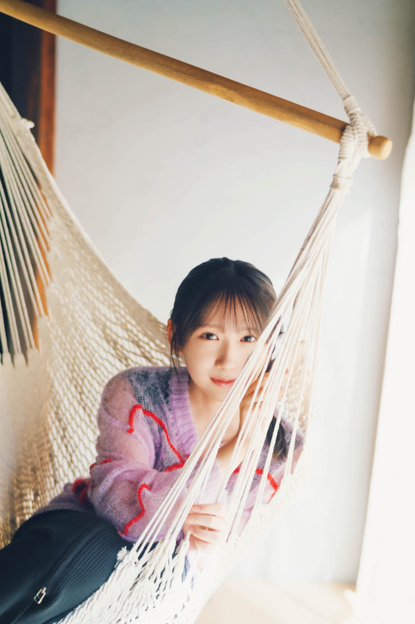 撮影は森の中に佇むヴィラをロケーションに和やかな雰囲気で行われた。暖炉で体を温めたり、ひなたに吊るされたハンモックでお昼寝をしたりしながら、彼女の唯一無二の可憐さを丁寧に切り取っている。さらに、広大な自然の中での撮影では、全身モコモコのニット姿で走り回りとびきりの笑顔を見せてくれた。藤嶌の可愛らしさと、ふとした瞬間に見せる少し大人っぽい表情のどちらもが楽しめるグラビアとなっている。