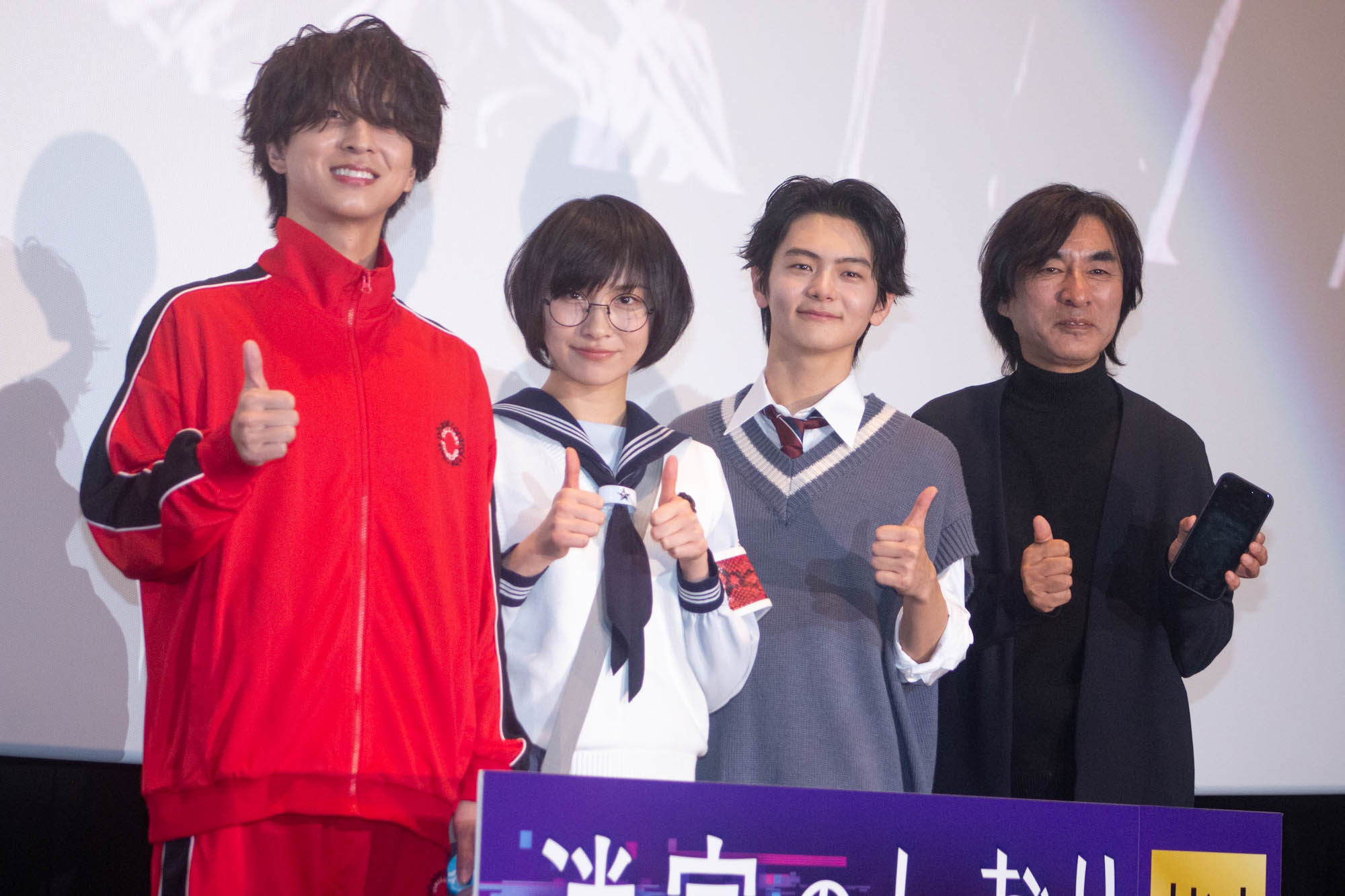 『迷宮のしおり』の公開御礼舞台挨拶が1月25日(日)に新宿バルト9で行われ、SUZUKA(新しい学校のリーダーズ)、齋藤潤、寺西拓人(timelesz)、河森正治監督が登壇した。