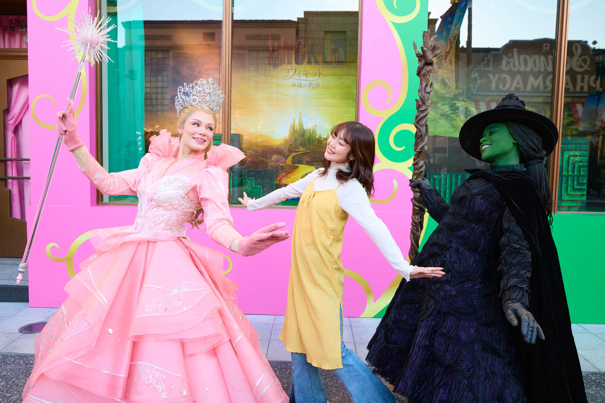 エルファバとグリンダのふたりに会えるほか、ユニバーサル・スタジオ・ジャパンのオリジナルコラボフードとグッズも発売されます!私自身も昨年パークでエルファバとグリンダと一緒に夢のような魔法のような時間を過ごしたので、またふたりに会えるのがとっても楽しみです。皆さんもこの春は映画館で『ウィキッド 永遠の約束』をご覧いただき、映画で感じた感動を、ユニバーサル・スタジオ・ジャパンでももう一度ご体験ください!」