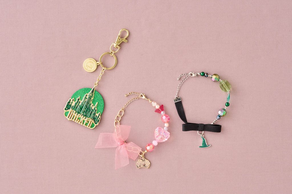 また、映画の世界観をイメージした、身につけて楽しめるオリジナルグッズも登場。グラデーションカラーにラメプリントを施したスウェットや、エメラルドシティを表現した刺繍とプリントが映えるジャケットをはじめ、バッグにつけて楽しめるキーチェーンや、帽子モチーフとシフォンリボンがアクセントのブレスレットセットなど、さりげなく世界観を取り入れられるアイテムが登場する。